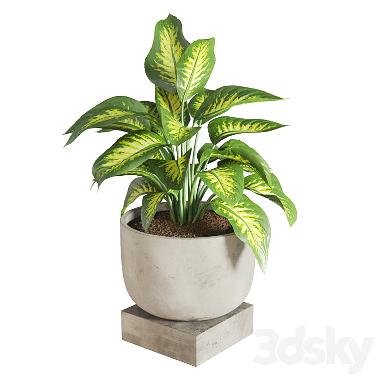 This high-quality 3D model features a beautifully curated set of six tropical indoor plants, each housed in minimalist concrete planters with smooth, soft-textured finishes. The pots feature rounded cylindrical forms, some with elegant pedestal bases, designed to complement modern, minimalist, and industrial interior styles. Each plant is carefully modeled with attention to leaf detail, natural bending, and realistic soil texture—perfect for high-end archviz projects.