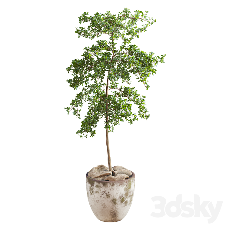 The pot’s handmade, weathered look perfectly complements the organic shape of the Bucida Buceras, making this model a striking focal point for both modern and naturalistic interiors. All assets are optimized for V-Ray and Corona rendering engines and ready to drop into high-end visualizations.